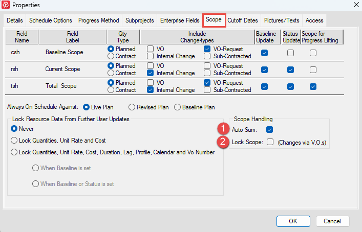2. Lock Scope (Off): Since IDE does not support the transfer of VOs for resource assignments - this must be turned off in order to add scope to schedule.