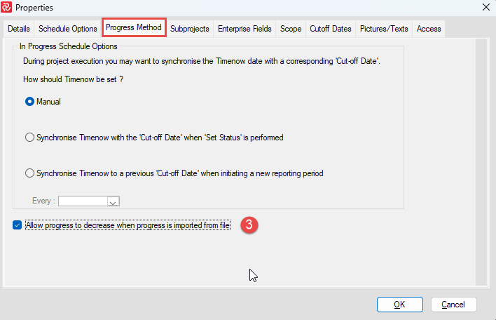 "Allow progress to decrease..." (On) ensures that activities are updated even if progress drops.