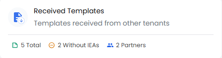 Pressing this button will show the list of Templates that have been created by other organizations and shared (read-only) with your organization. The button also shows some useful statistics.