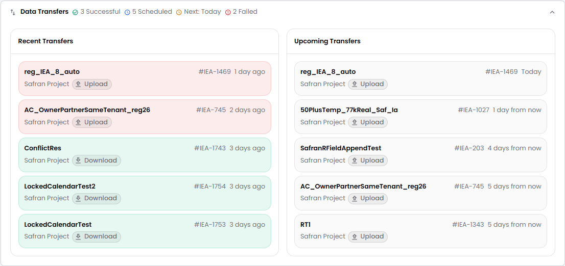 Here you will see the last 5 recent transfers (at left), and the next 5 upcoming transfers (at right). Note that the by pressing any of the recent transfers, you will filter on that IEA's logs, and similarly, pressing on one of the upcoming transfers will filter the IEA: