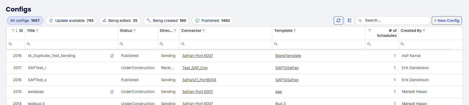 - Published Configs: The Configs that have been published